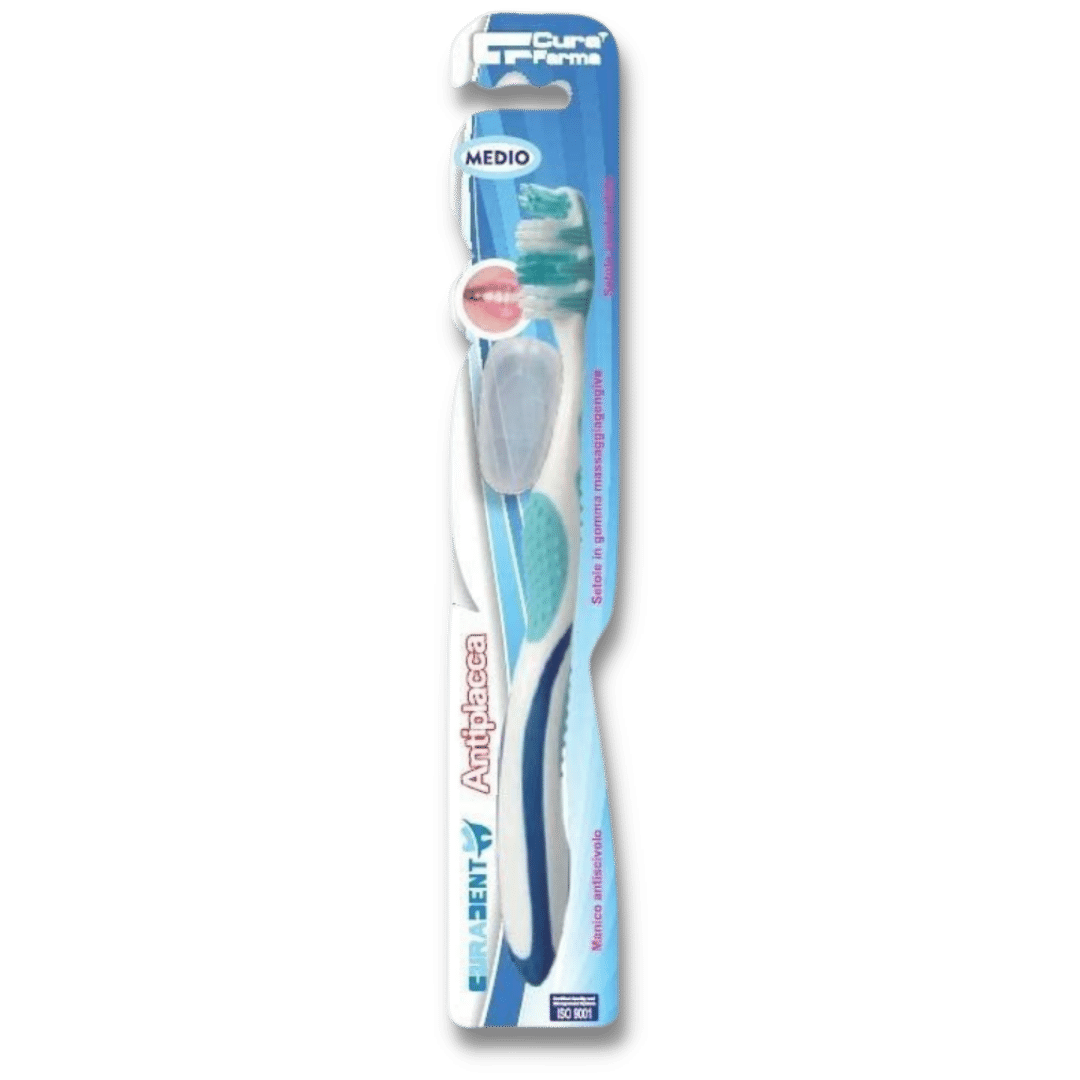 Antiplacca 🦷 con setole media con inserti in gomma morbida per un effetto massaggia-gengive.