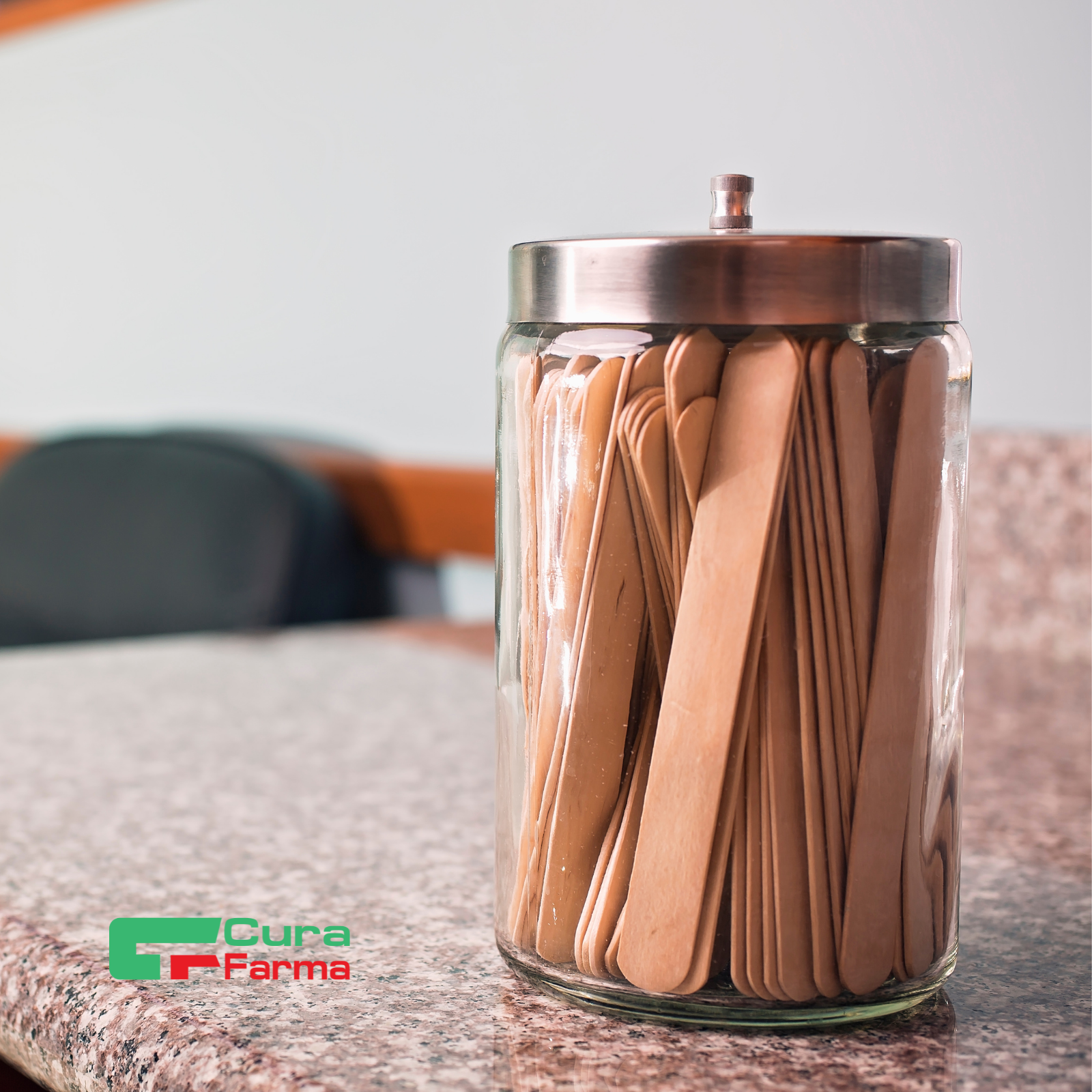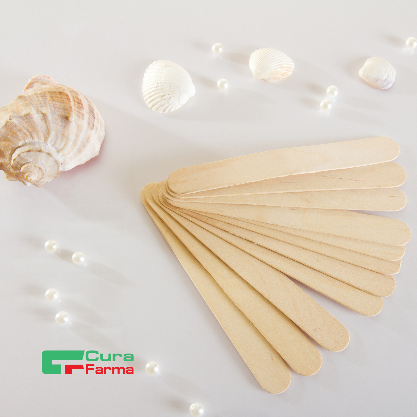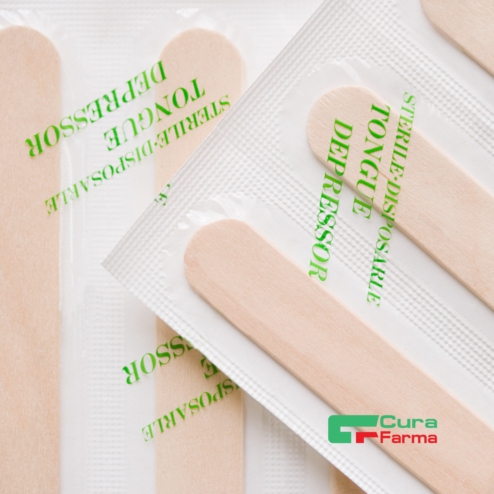 Confezione da 100 Abbassalingua Medicali in Legno, confezionati singolarmente in bustine sterili.