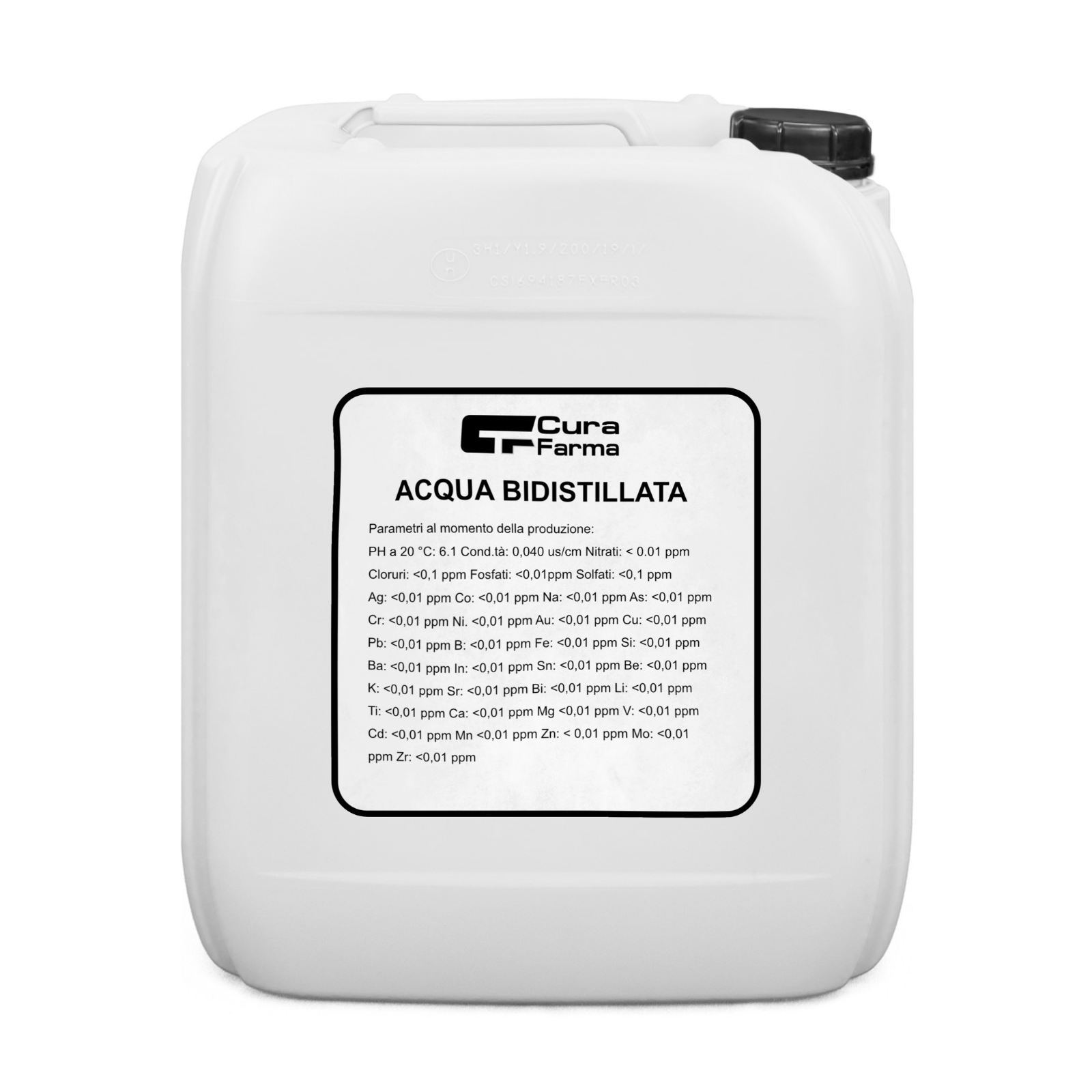 Acqua bidistillata è un’acqua priva di sali disciolti con conducibilità bassa. La sua formula chimica è H2O. Questo tipo acqua è particolarmente indicata per l’utilizzo in tutte le macchine e strumenti che utilizzano acqua per svolgere la loro funzione, evitando la formazione di residui di calcare che pregiudicano la loro funzionalità.