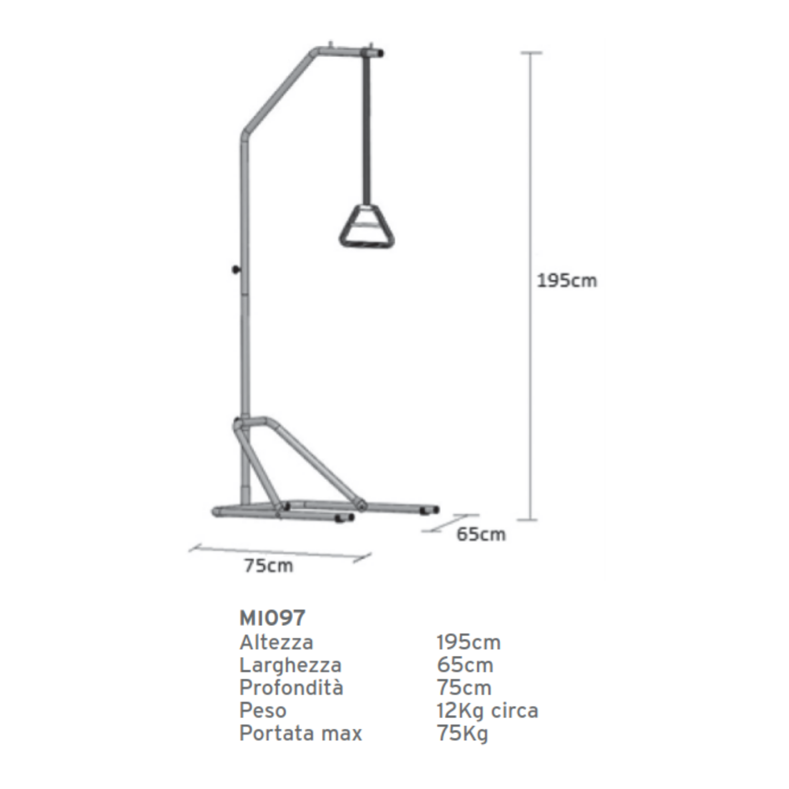 Robusto supporto a terra in acciaio verniciato rinforzato.
