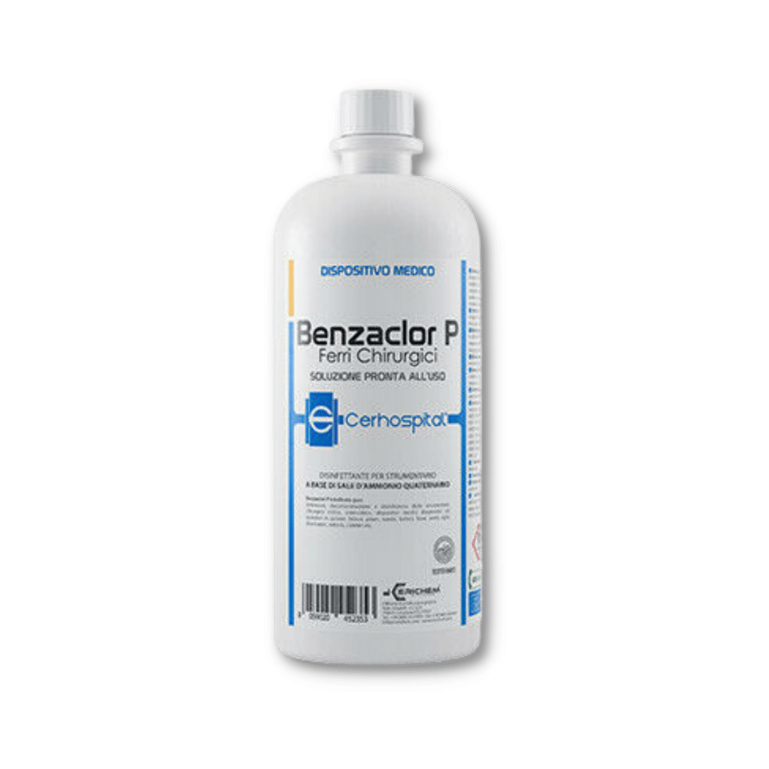 Bazaclor - P è una soluzione acquosa pronta all'uso a base di benzalconio cloruro a PH Neutro per la disinfezione e la conservazione sterile di strumentario chirurgico invasivo e di dispositivi medici, Compatibile con i metalli inox, vetro, materiali plastici e vasche ad ultrasuoni