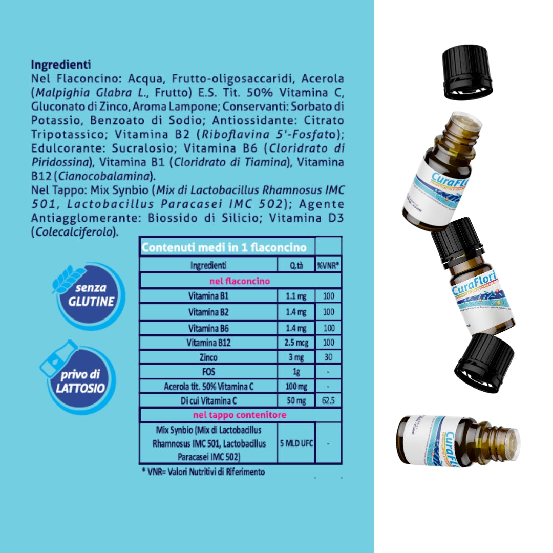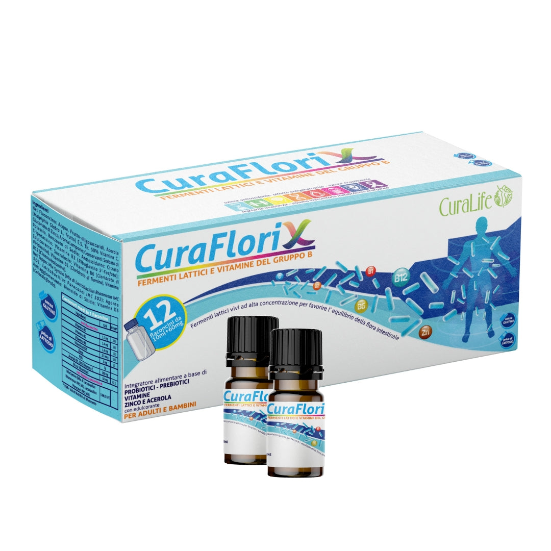 CuraFlorix è un integratore alimentare di fermenti lattici vivi, 100% made in Italy, che aiuta a riequilibrare la flora intestinale e a prevenire i disturbi digestivi. Assumere i fermenti lattici può essere utile per rafforzare le difese immunitarie, favorire l'assorbimento di nutrienti e regolarizzare il transito intestinale. CuraFlorix contiene 2 ceppi batterici selezionati, vitamine del gruppo B, e vitamina C, per favorire il benessere dell'organismo e la regolarità intestinale. CuraFlorix è disponibile in flaconcini monodose, facili da assumere e da portare con te. Prova CuraFlorix e sentiti più leggero e in forma!