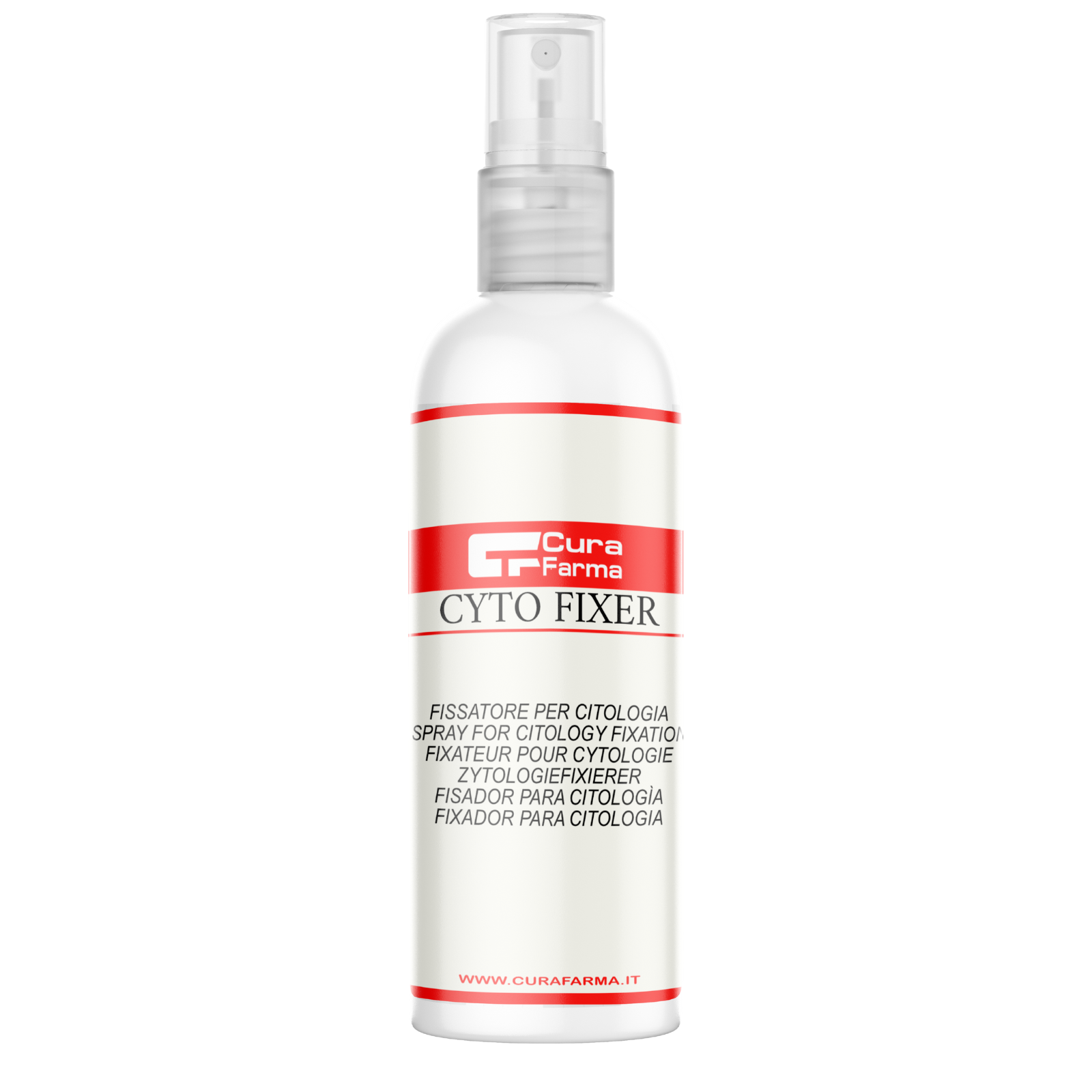 Soluzione di fissaggio per citologia e pap test, Flacone di fissativo citologico CytoFixer pensato per fissare sul vetrino portaoggetti il materiale cellulare strisciato durante l'analisi per stabilizzare la colorazione e garantire la conservazione del prelievo. Fissa rapidamente le cellule, rende stabile la colorazione secondo Papanicolaou, garantisce nel tempo la conservazione del prelievo.