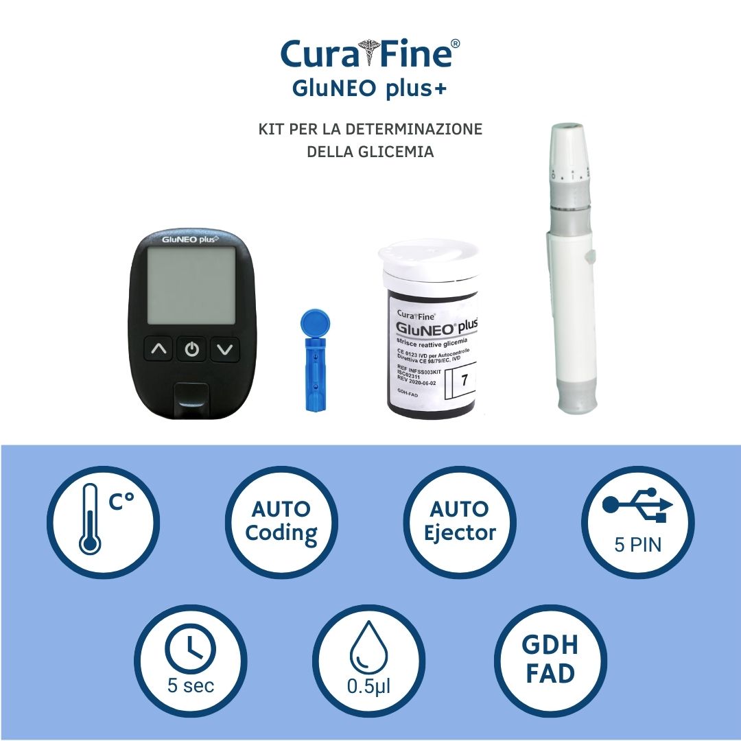 Il glucometro GluNEO® plus è preciso efficace e di facile utilizzo.