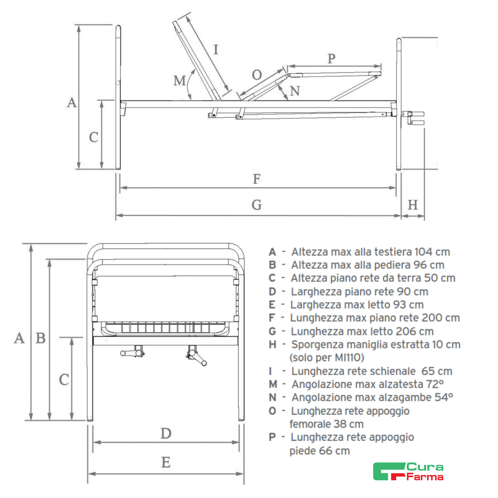 Dimensioni letto: cm 206x93x104h (alla testiera)