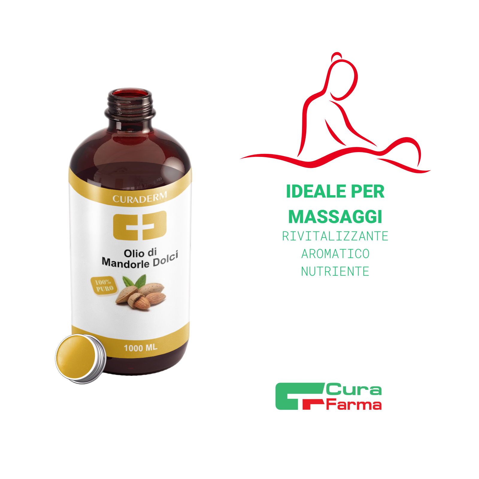L'olio di Mandorle è utilizzato nel massaggio, aromaterapia, pelle, capelli, come detergente per il viso o come struccante. Ricco di vitamine e acidi grassi essenziali.