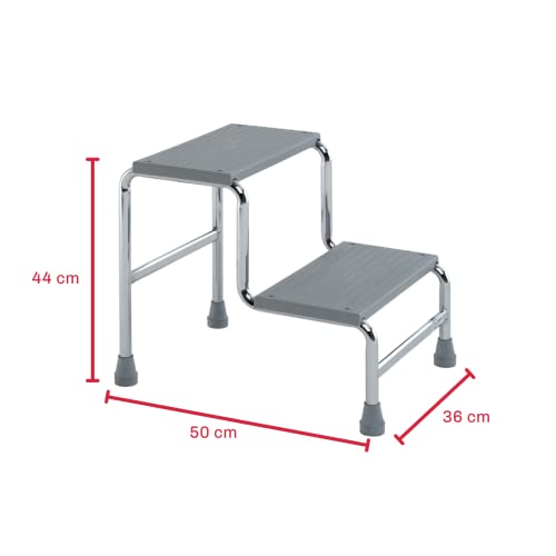Il Predellino Scaletta scendiletto Originale Cura Farma è realizzato in acciaio cromato resistente ed è dotato di due gradini per aiutare la degenza e la mobilità. La sua struttura resistente ed affidabile assicura una presa salda e una sicurezza ottimale.