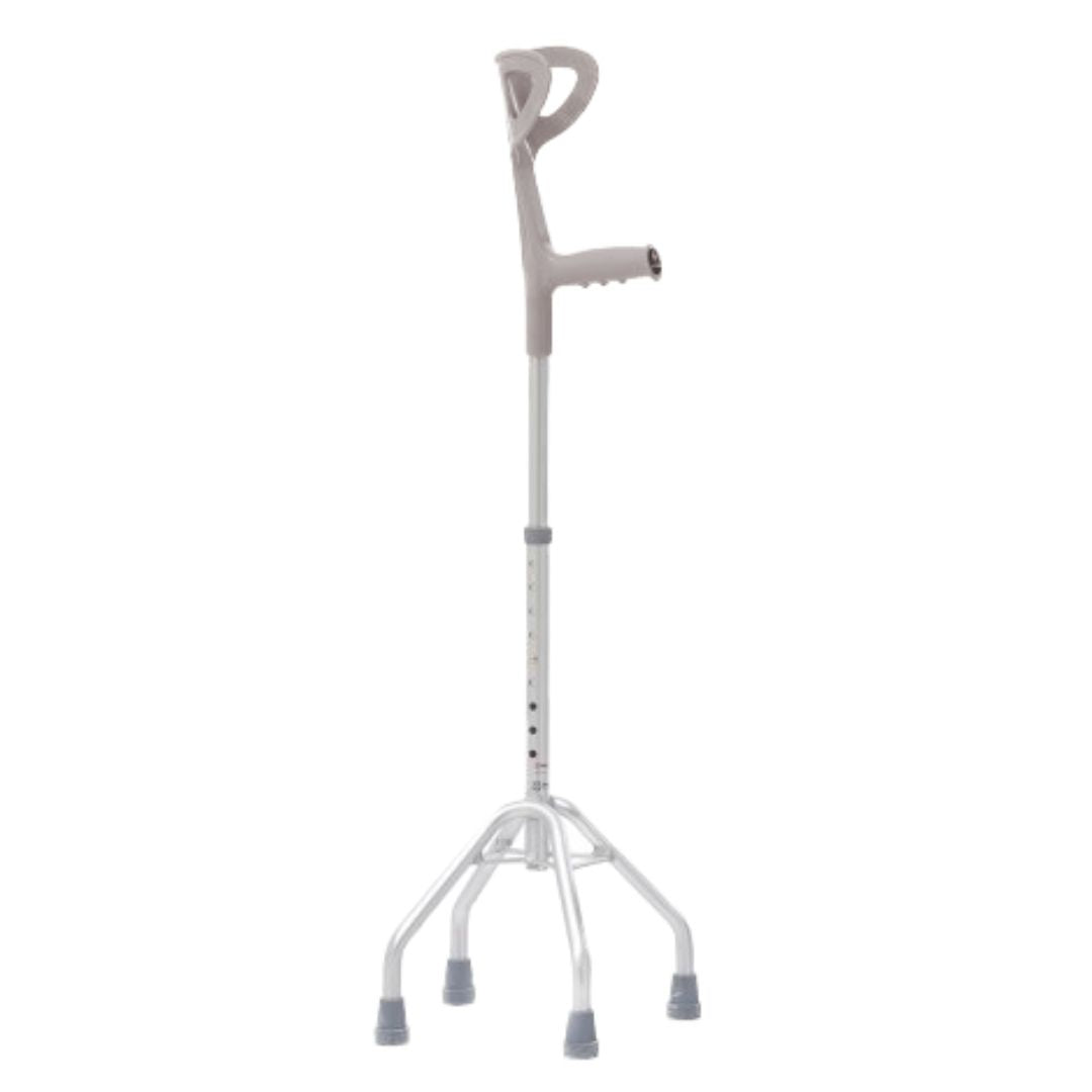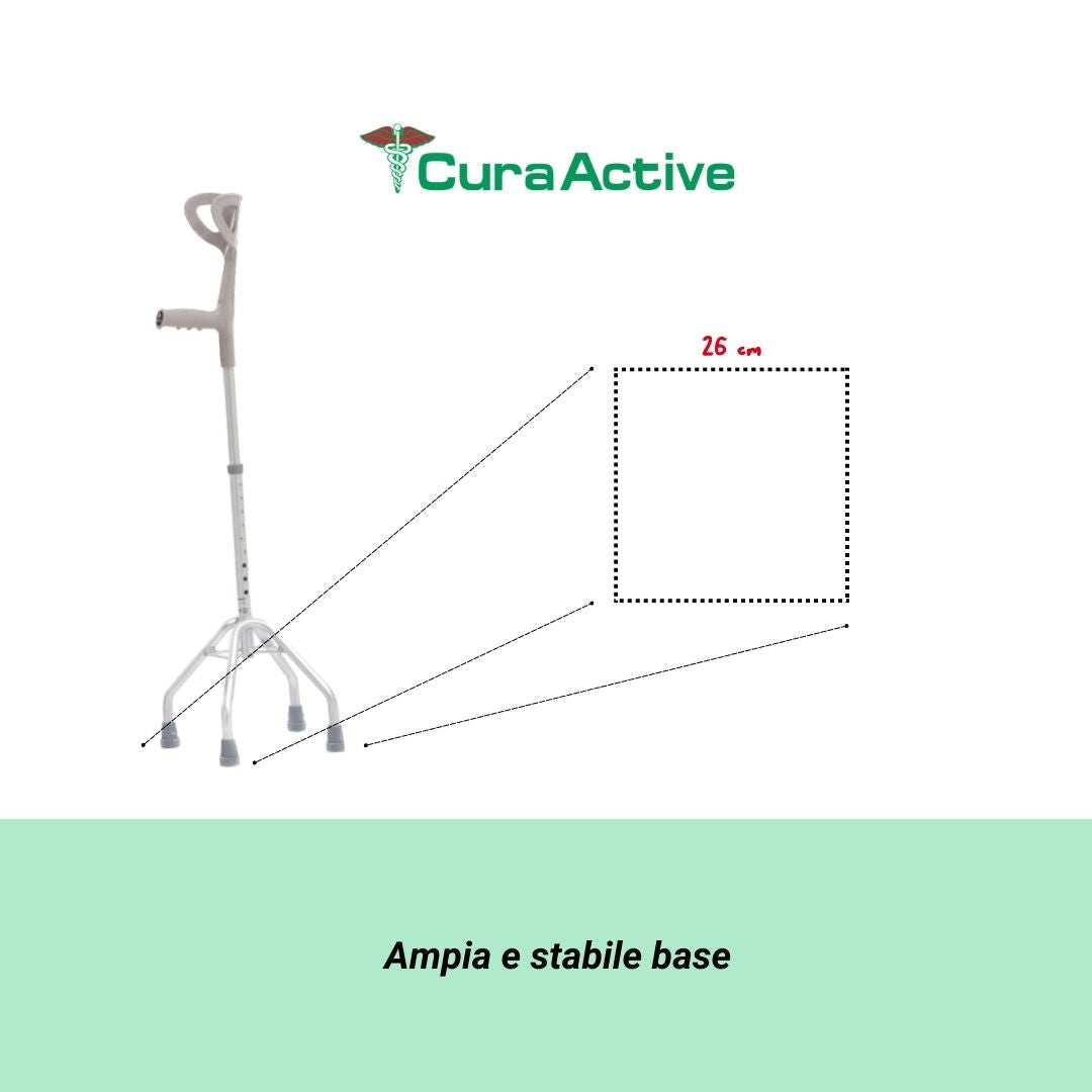 Il quadripode CuraWalk è un ausilio passeggio per anziani è progettato per offrire comfort e sicurezza durante gli spostamenti quotidiani. I suoi tre piedi antiscivolo garantiscono una presa stabile su diverse superfici, riducendo il rischio di scivolare e cadere, grazie anche alla base quadripodica, larga abbastanza da offrire il massimo supporto con il minimo ingombro.