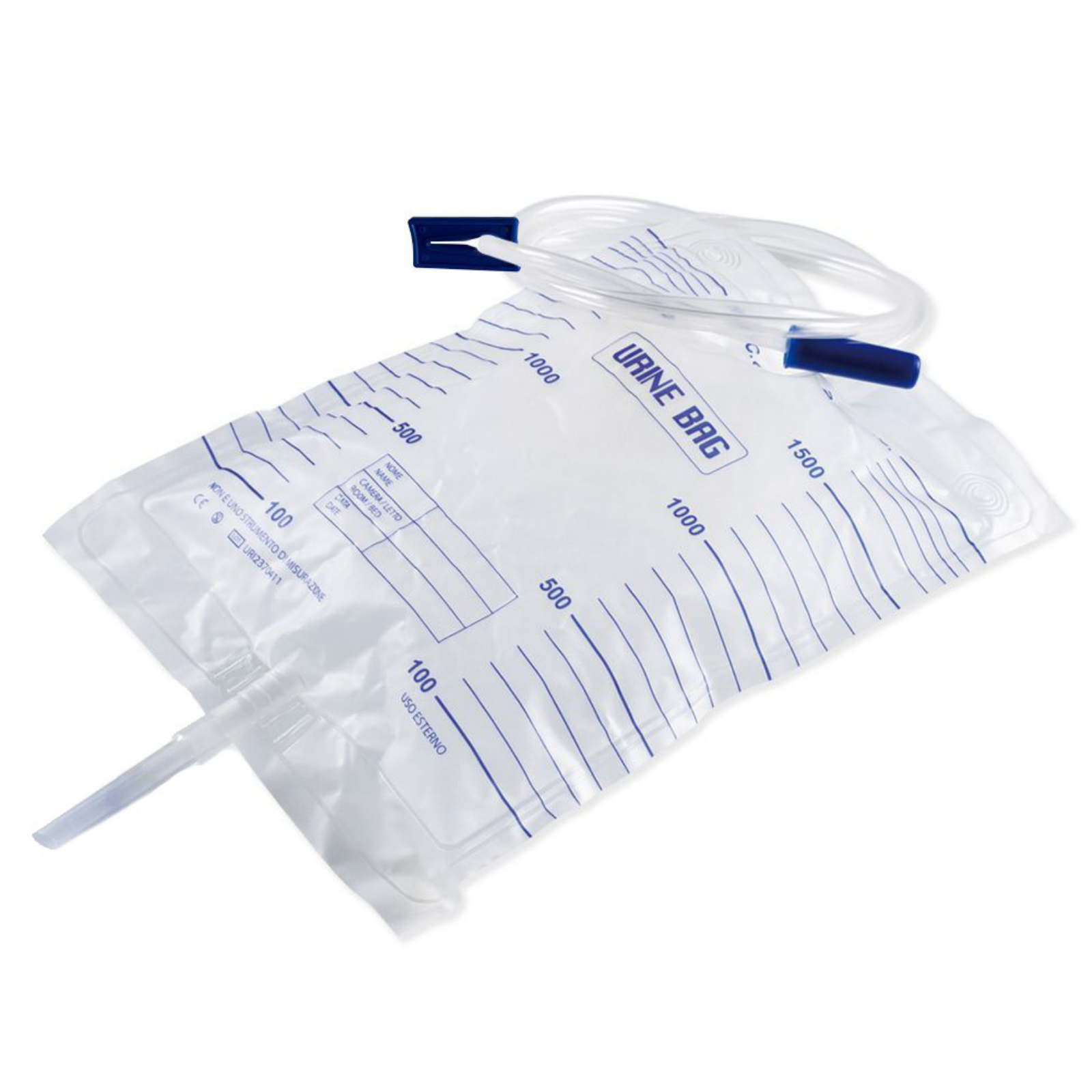 Sacca urina termosaldata in PVC flessibile atossico. Dotato di predisposizioni per fissaggio standard e doppia saldatura per garantire una tenuta perfetta.
