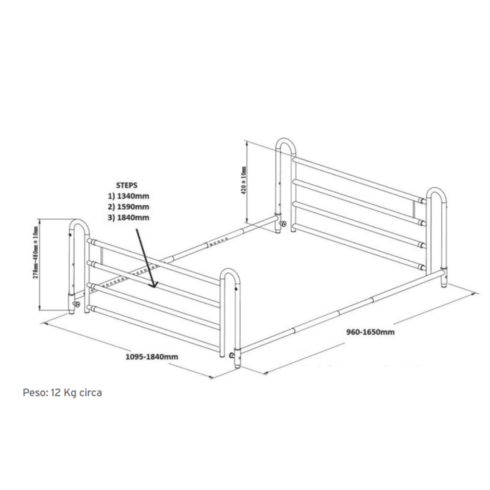 Regolabili in larghezza e lunghezza, adattabili a tutti i letti a rete fissa senza regolazione (senza alzatesta e alzagambe).