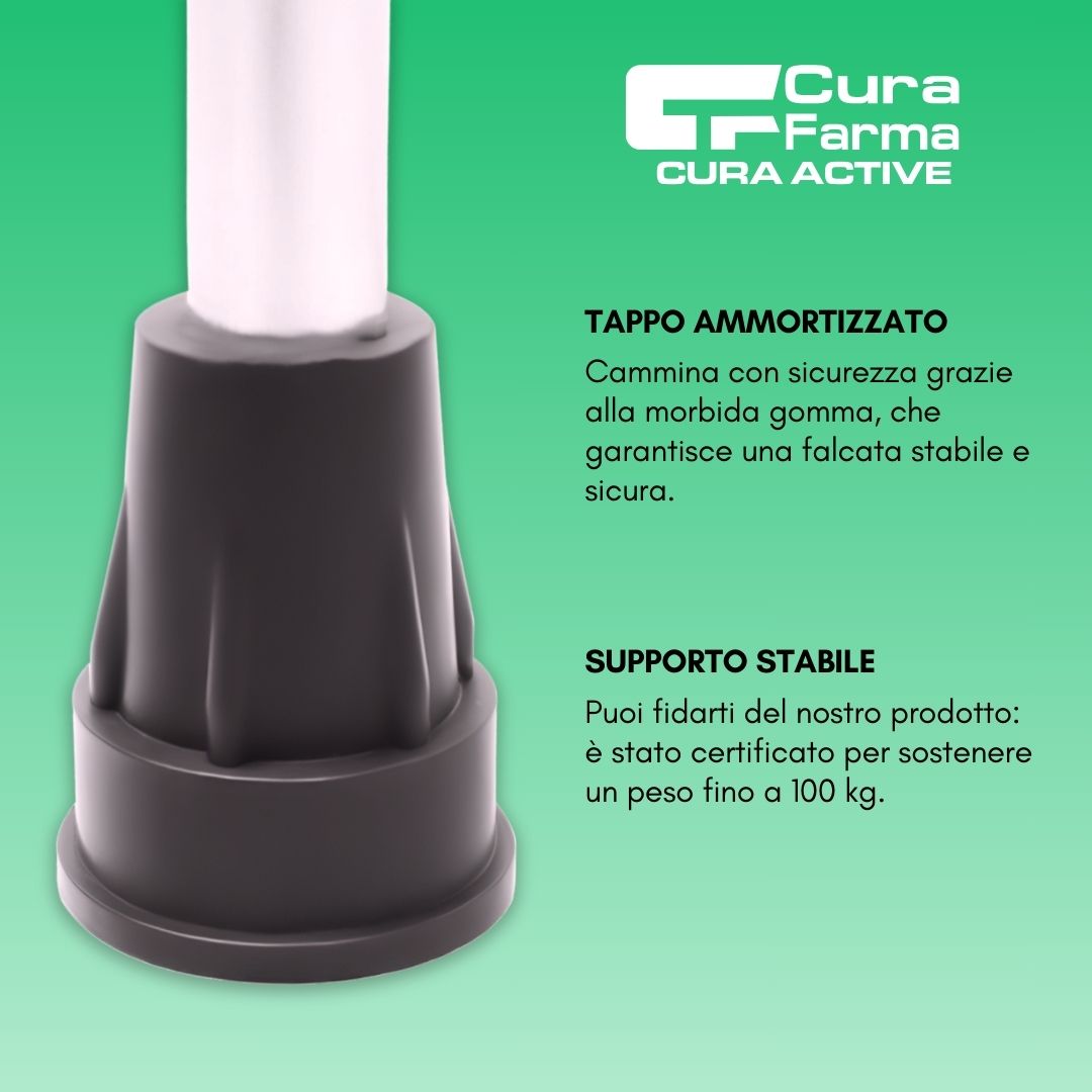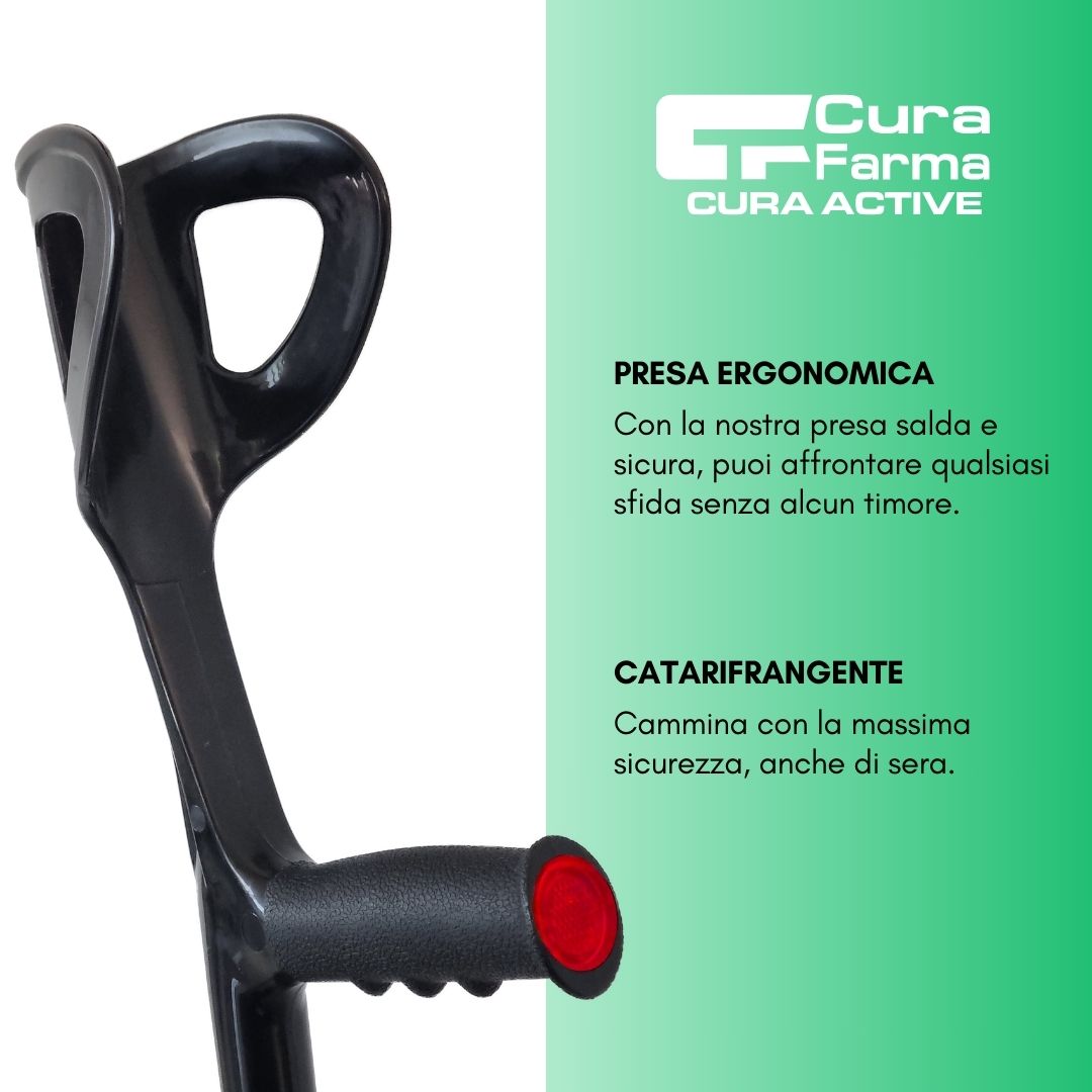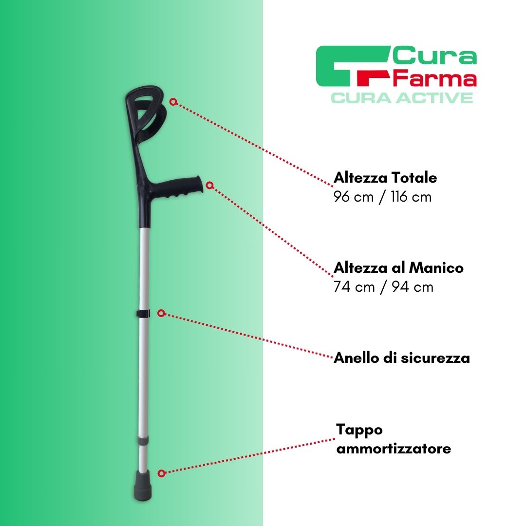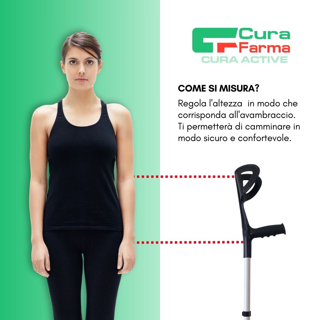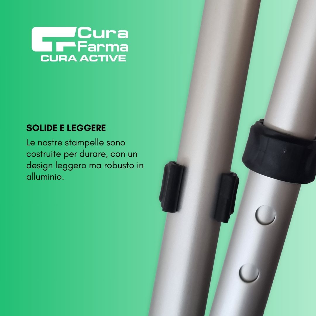 Stampelle capaci di accompagnanti nel tuo percorso post-operatorio, o come assistenza alla mobilità. Sono regolabili, in solido ma leggero alluminio, tollerano all’incirca 100 kg di peso. Facilmente utilizzabili da persone alte 150 cm fino ad arrivare ad oltre i 190 cm