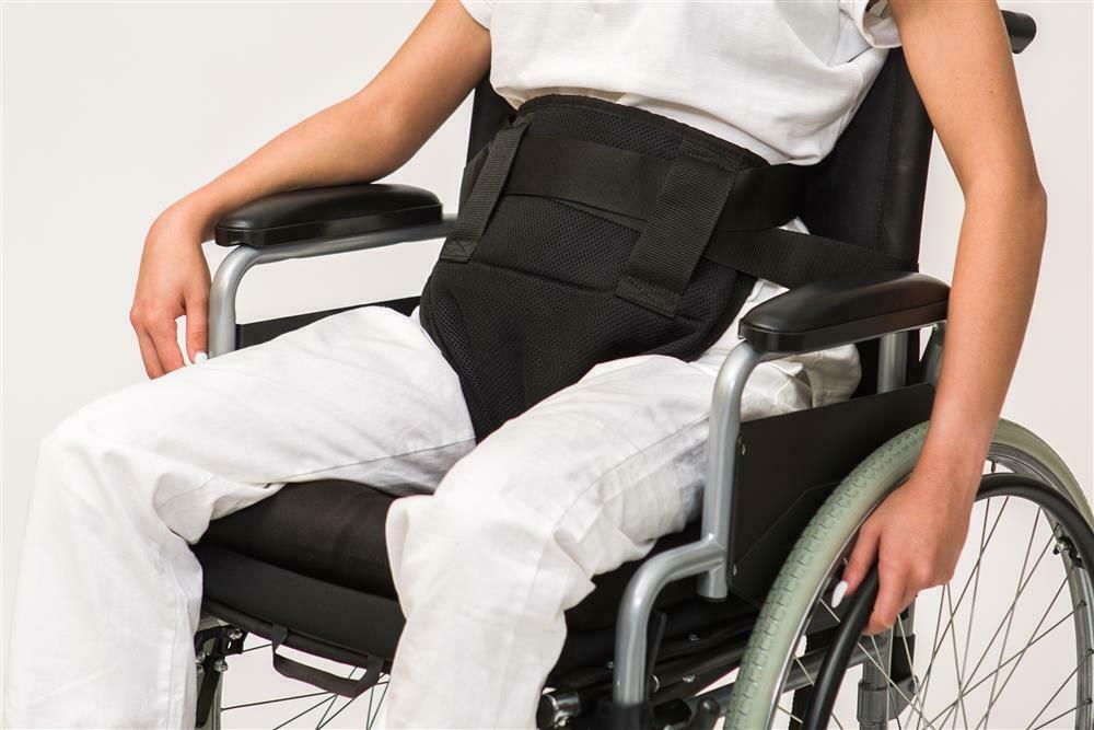 Per evitare lo scivolamento in avanti del paziente seduto su comoda o carrozzina. Con robuste cinghie e spallacci di ancoraggio regolabili. Facilmente lavabile.