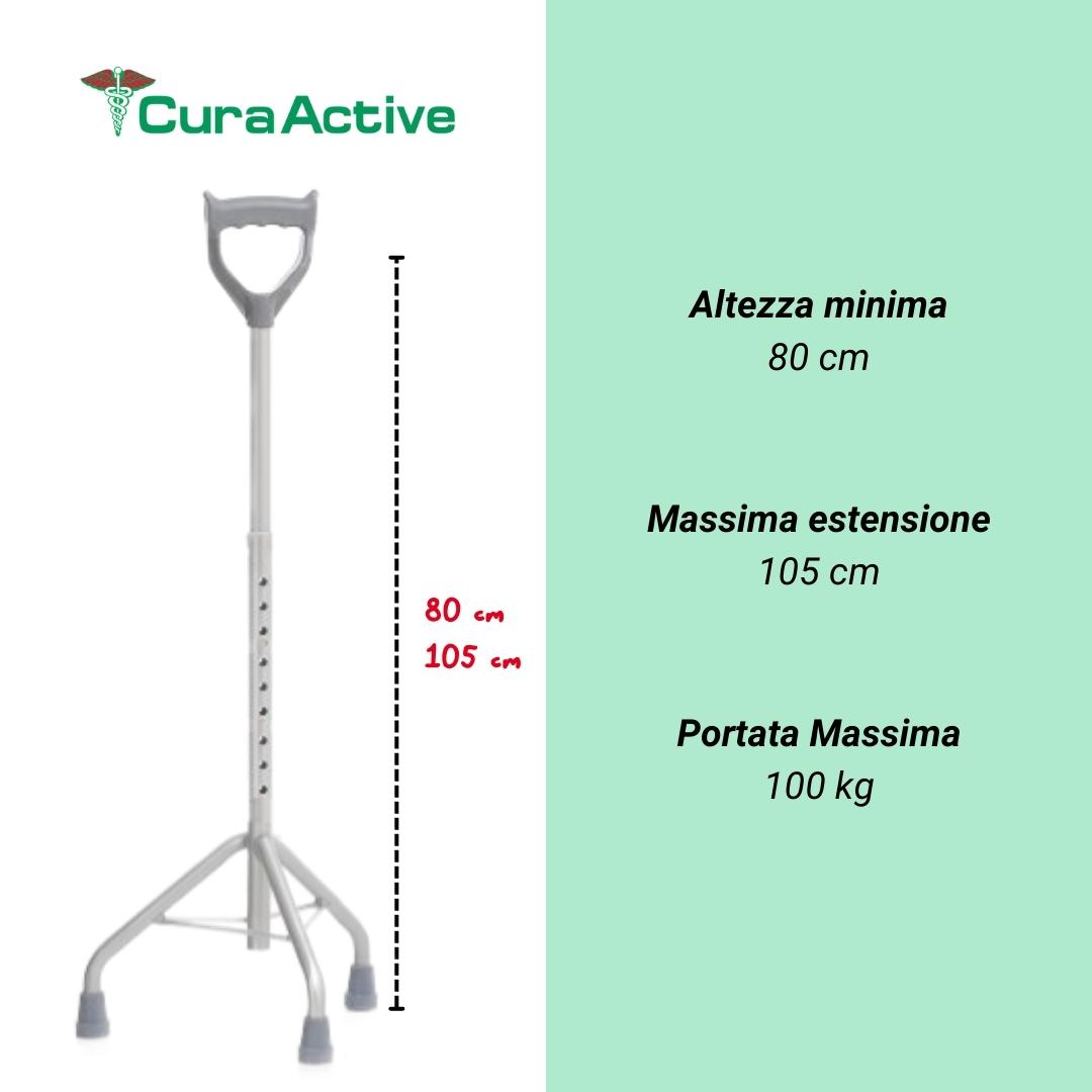 Il tripode CuraWalk è un ausilio passeggio per anziani è progettato per offrire comfort e sicurezza durante gli spostamenti quotidiani. I suoi tre piedi antiscivolo garantiscono una presa stabile su diverse superfici, riducendo il rischio di scivolare e cadere, grazie anche alla base tripodica, larga quanto basta per offrire il massimo supporto con il minimo ingombro.